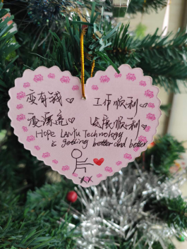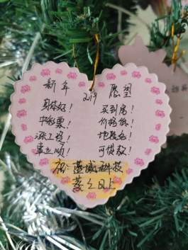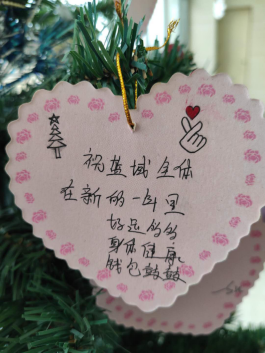 大家把美好的心愿掛在了圣誕樹上,分享的過程中還不忘相互調(diào)侃一番。