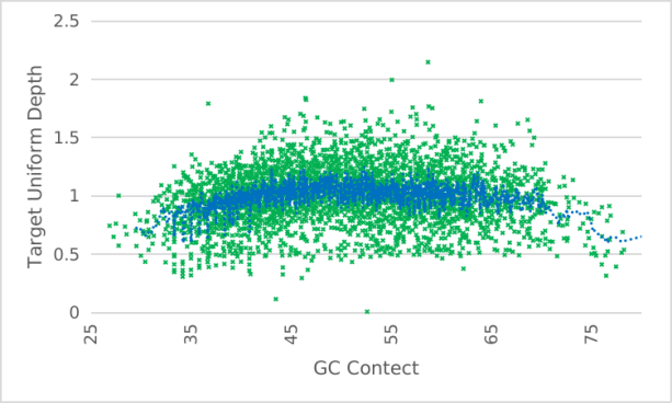 | 案例(以NA12878樣本為模板進(jìn)行建庫,均一化深度后,不同GC含量區(qū)域具有良好均一) | ||||