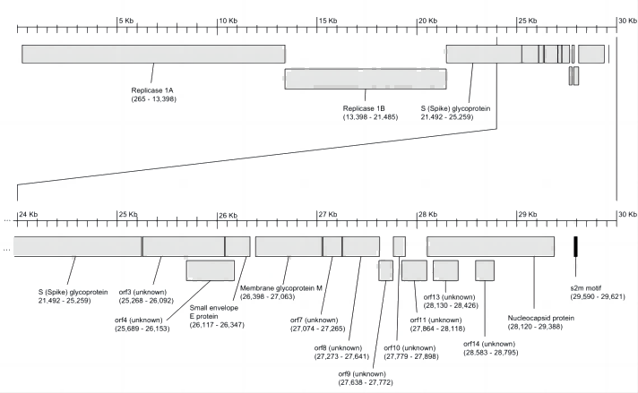Severe acute respiratory syndrome (SARS)于2003年二月在亞洲第一次被報(bào)道,繼而傳播到全球十幾個(gè)國家,SARS屬于一種冠狀病毒,是一類具有囊膜、基因組為線性單股正鏈的RNA病毒,對(duì)應(yīng)的結(jié)構(gòu)示意圖如下: