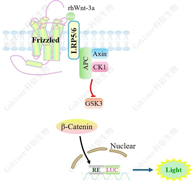 Wnt Effector Reporter Cell 報(bào)告基因藥靶模型很好的模擬了體內(nèi) WNT 的信號(hào)轉(zhuǎn)導(dǎo)過(guò)程,原理見(jiàn)下圖所示。