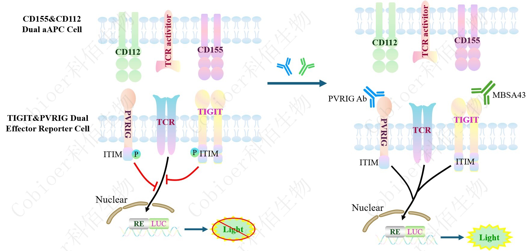 Figure 1.TIGIT&PVRIG Dual Effector Reporter Cell 細(xì)胞模型原理圖