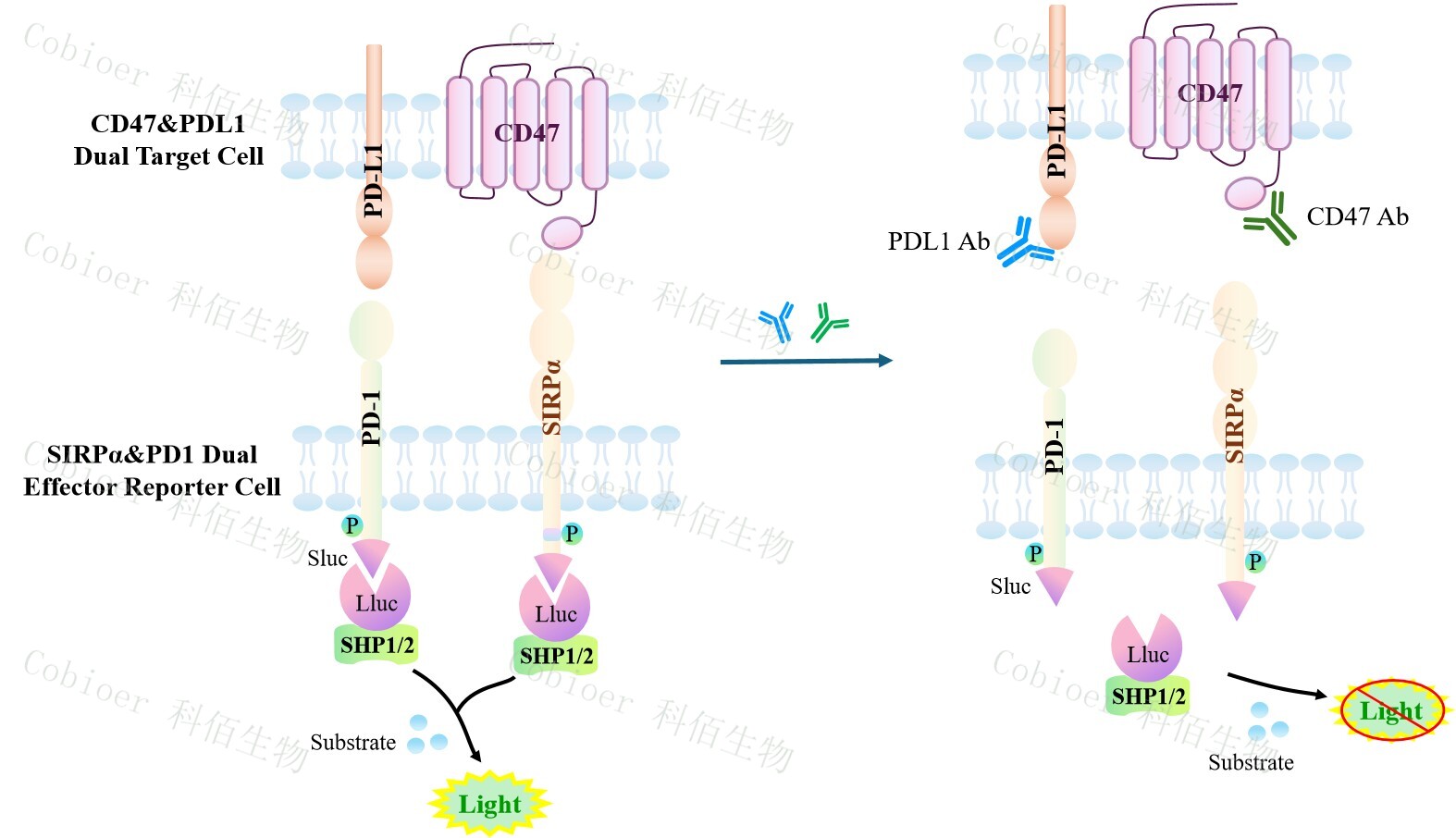 ![]() Figure 1. SIRPα&PD1 Dual Effector Reporter Cell 細(xì)胞模型原理圖 |