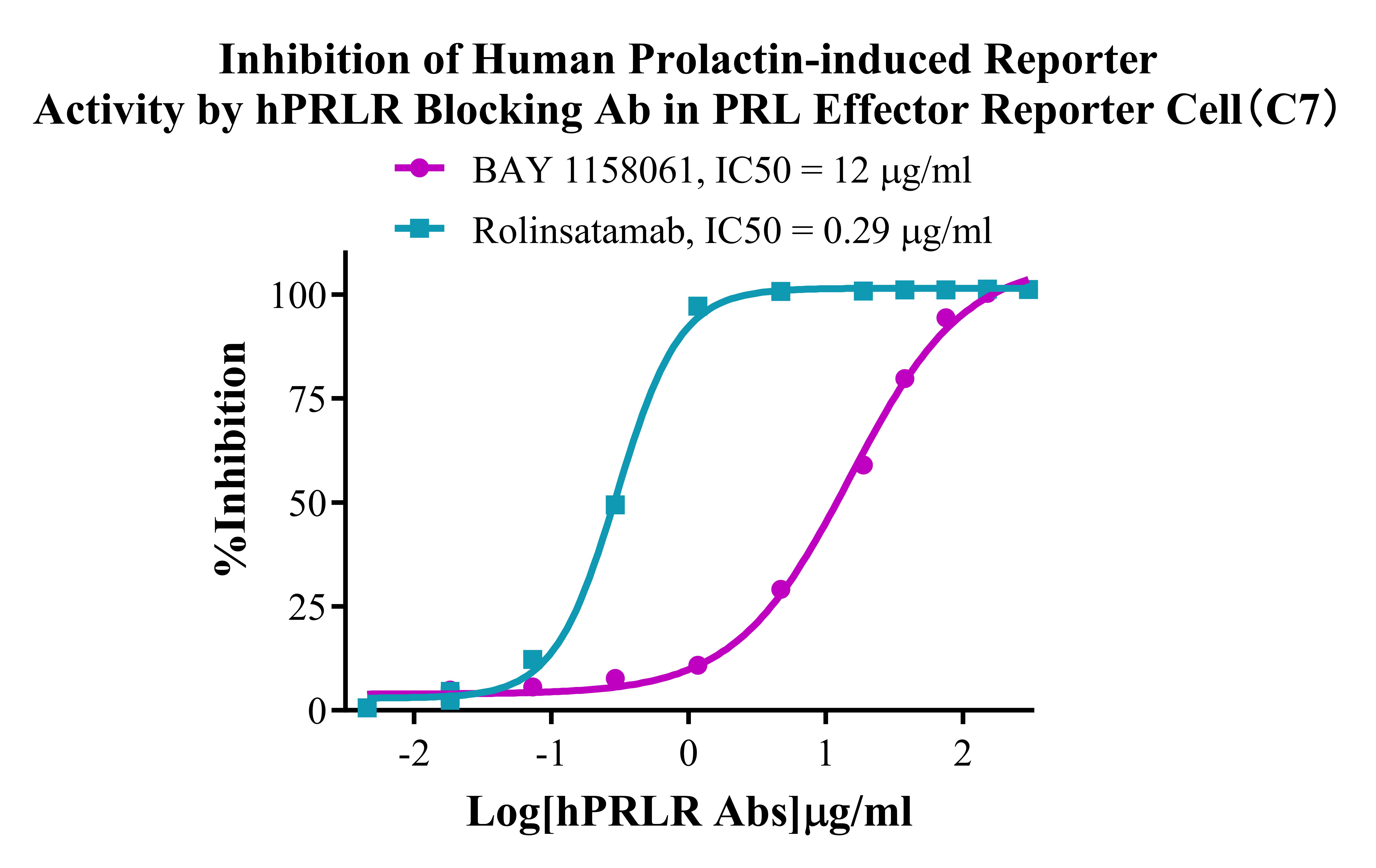Figure 4. Inhibition of Human Prolactin-induced Reporter Activity by hPRLR Blocking Ab in PRL Effector Reporter Cell(C7). |