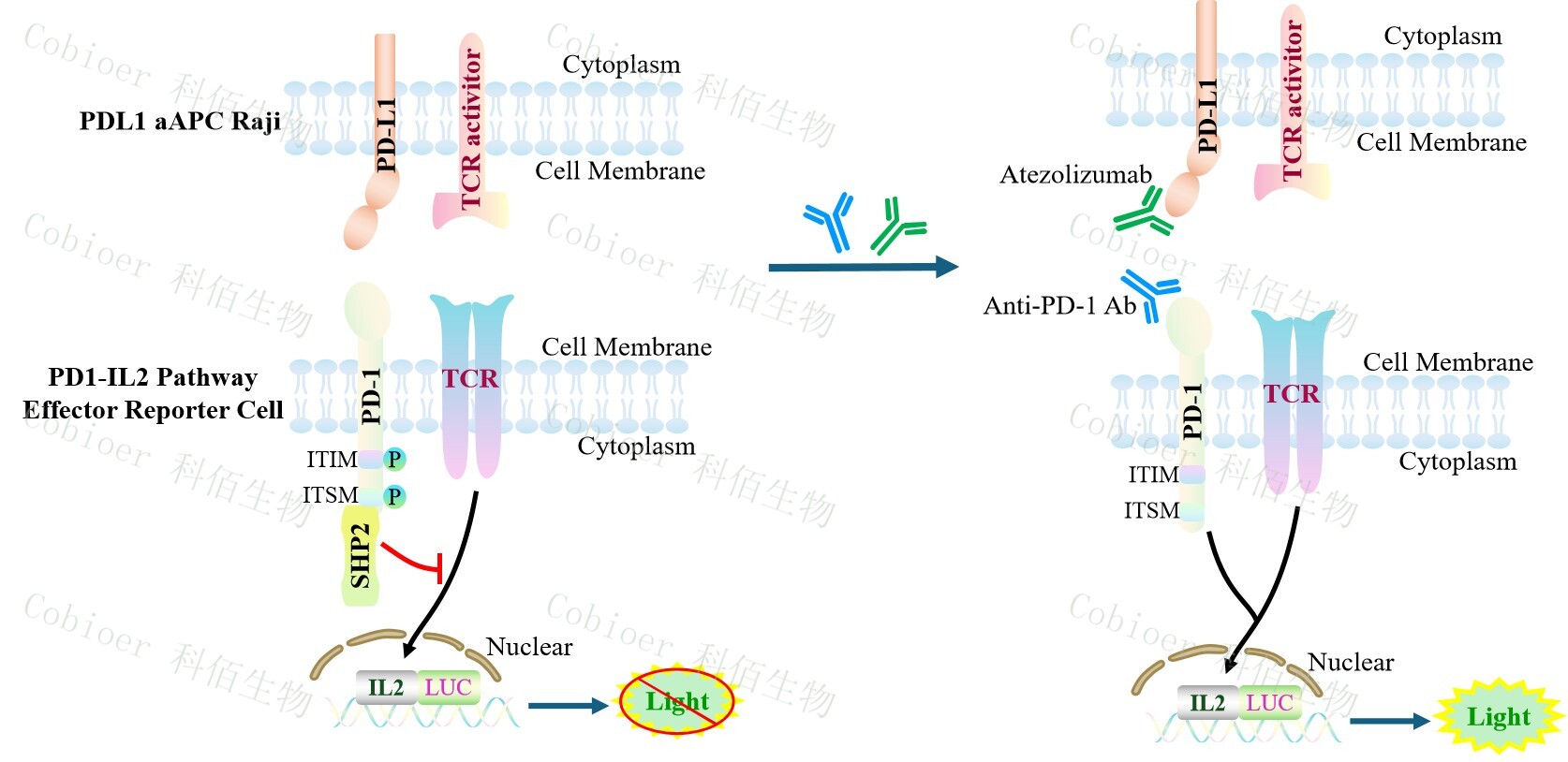 PD1-IL2 Pathway Effector Reporter Cell 報告基因藥靶模型很好的模擬了體內(nèi) PD1&IL2 的信號轉(zhuǎn)導(dǎo)過程,原理見下圖所示。![]() Figure 1. PD1-IL2 Pathway Effector Reporter Cell 細胞模型原理圖 |