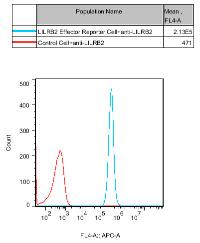 LILRB2 Effector Reporter Cell 報告基因藥靶模型很好的模擬了體內(nèi) LILRB2 的信號轉導過程,原理見下圖所示。![]() ![]() Figure 1. LILRB2 Effector Reporter Cell 模型原理圖 |
