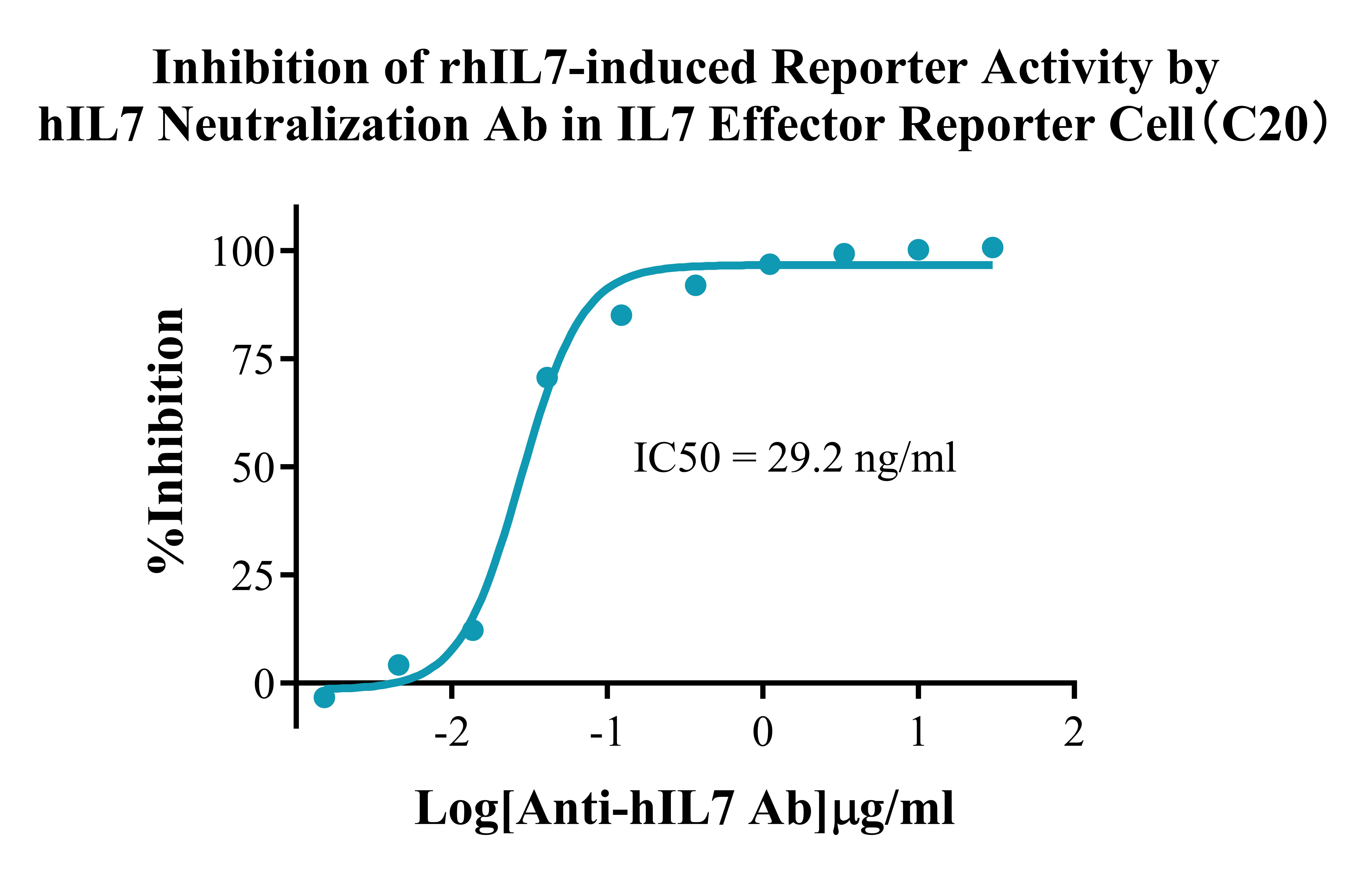Figure 4. Inhibition of Human rhIL7-induced Reporter Activity by hIL7 Neutralization Ab in IL7 Effector Reporter Cell(C20). |