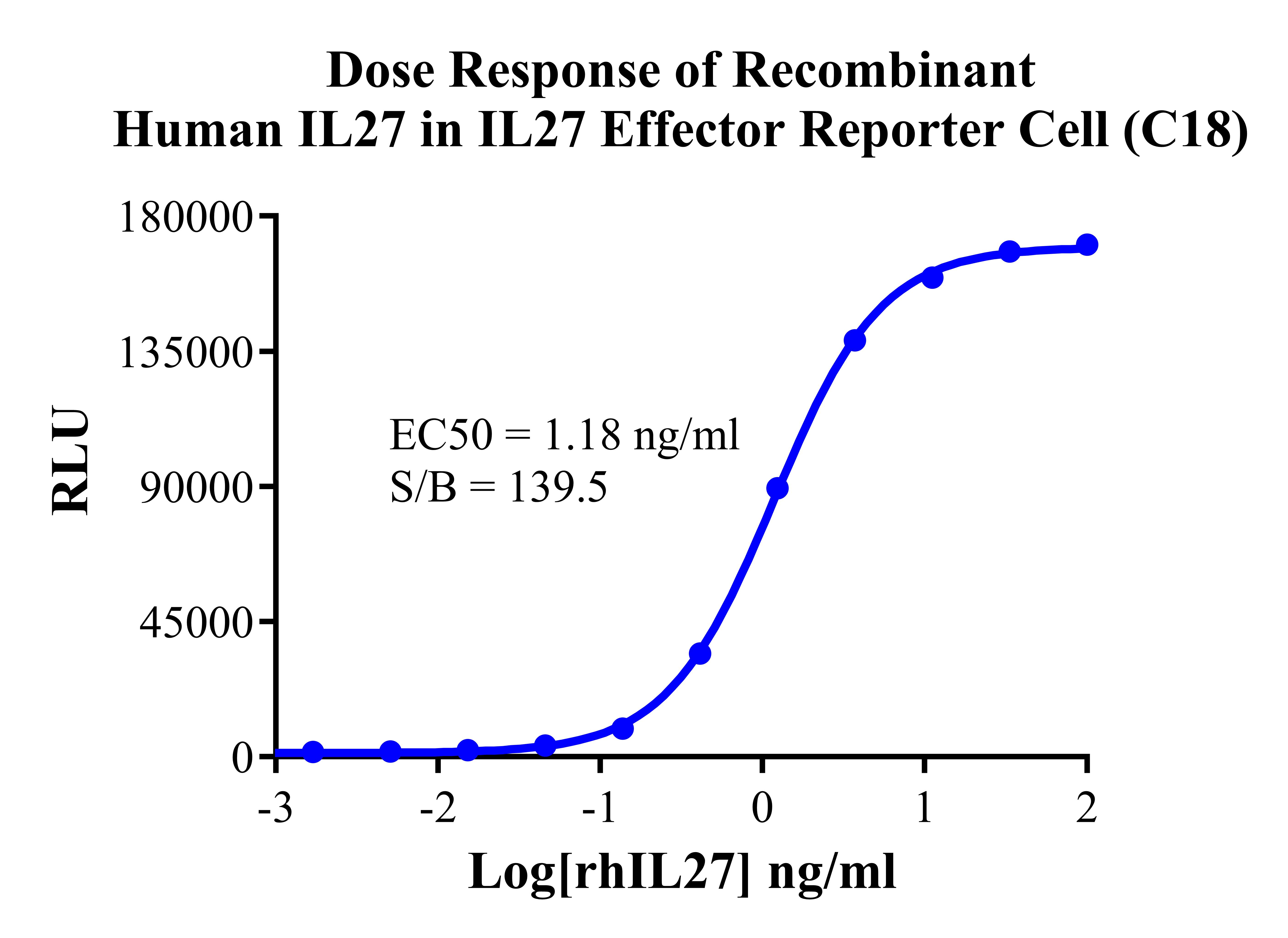 Figure 3.Dose Response of Recombinant Human lL27 in IL27 Effector Reporter Cell (C18). |
