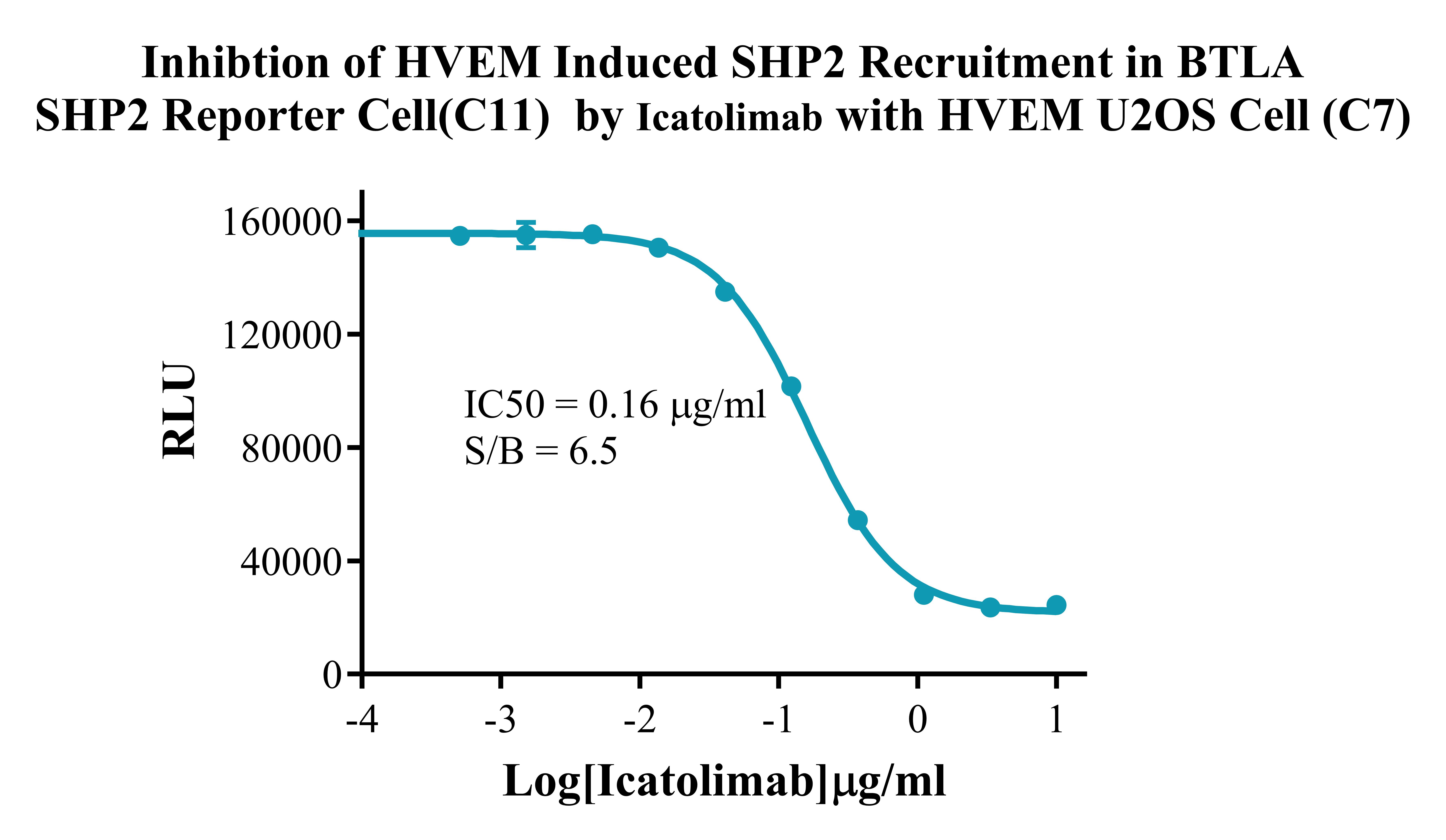 Figure 2. Inhibtion of HVEM Induced SHP2 Recruitment in BTLA SHP2 Reporter Cell (C11) by Icatolimab with HVEM U2OS Cell (C7). |