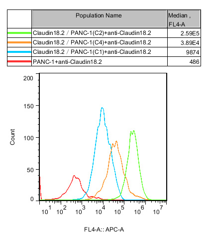 Claudin18是位于細(xì)胞膜表面緊密連接的主要成分,它在維持細(xì)胞極性和屏障功能以及促進(jìn)耐酸能力方面起著重要作用。CLDN18的第一個外顯子可以選擇性剪接,形成兩個具有高度同源氨基酸序列的不同剪接突變體(CLDN18.1和CLDN18.2)??缒さ鞍證LDN18由兩個細(xì)胞外環(huán)、四個跨膜結(jié)構(gòu)域和一個細(xì)胞質(zhì)結(jié)構(gòu)域組成。 |