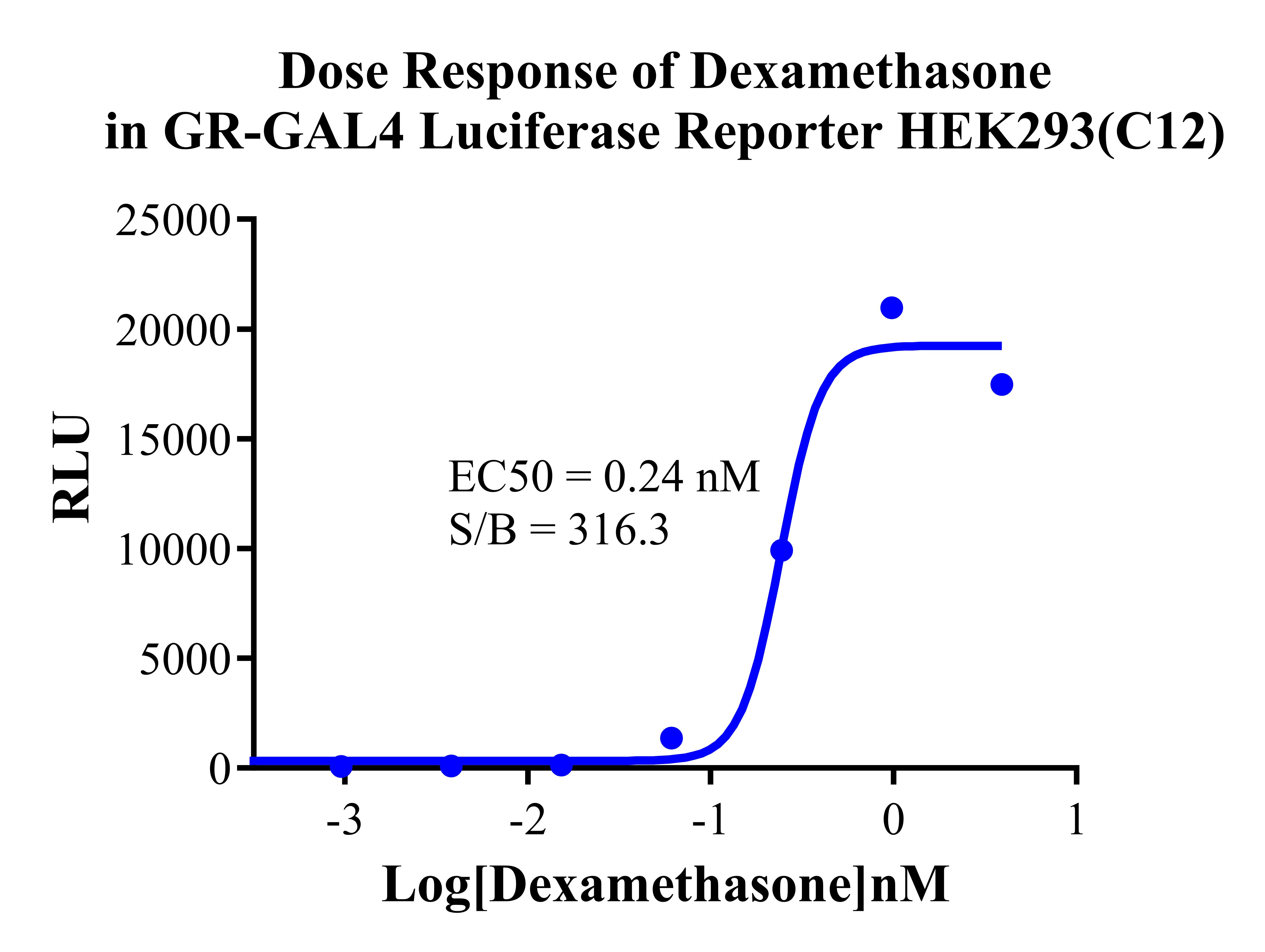 Figure 2. Dose Response of Dexamethasone in GR-GAL4 Luciferase Reporter HEK293 (C12). |