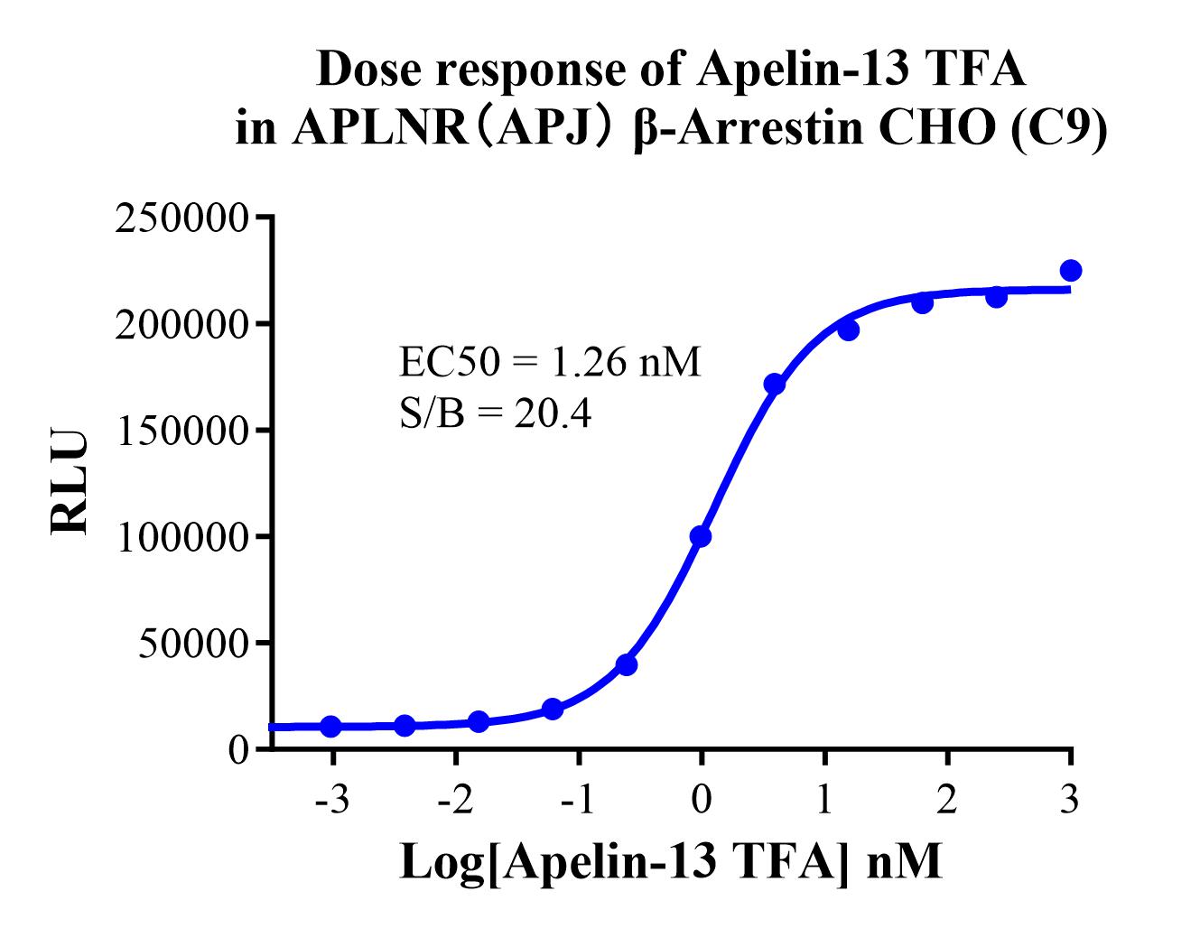 Figure 3.Dose response of Apelin-13 TFA in APLNR(APJ) β-Arrestin CHO (C9). |