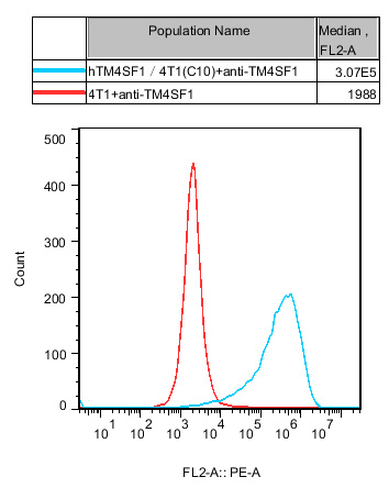 IV. Representative Data![]() Figure1.Recombinant hTM4SF1/4T1 stably expressing hTM4SF1. |