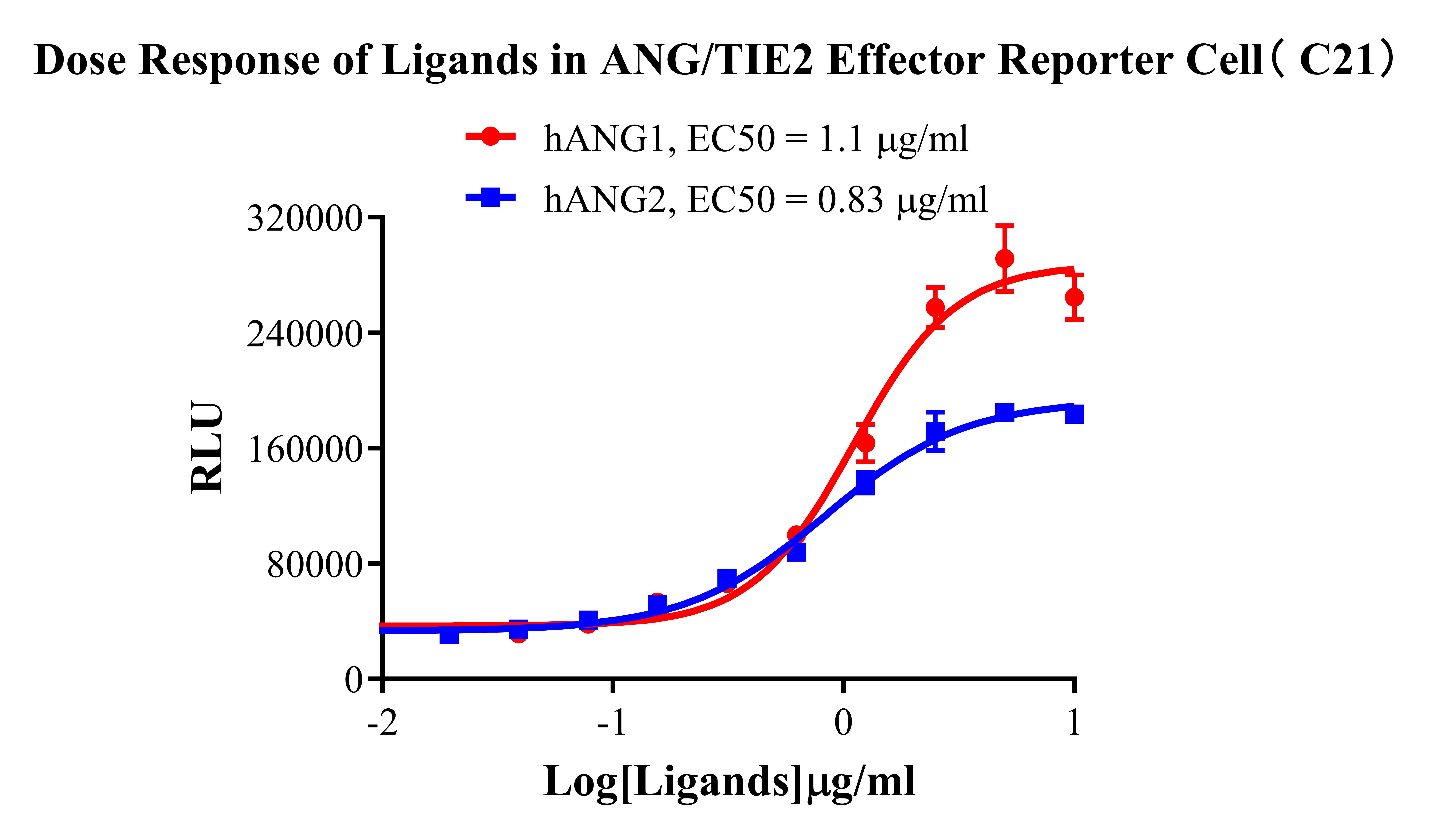ANG/TIE2 Effector Reporter Cell 報告基因藥靶模型很好的模擬了體內 ANG/TIE2 的信 號轉導過程,原理見下圖所示。![]() Figure 1. ANG/TIE2 Effector Reporter Cell 細胞模型原理圖