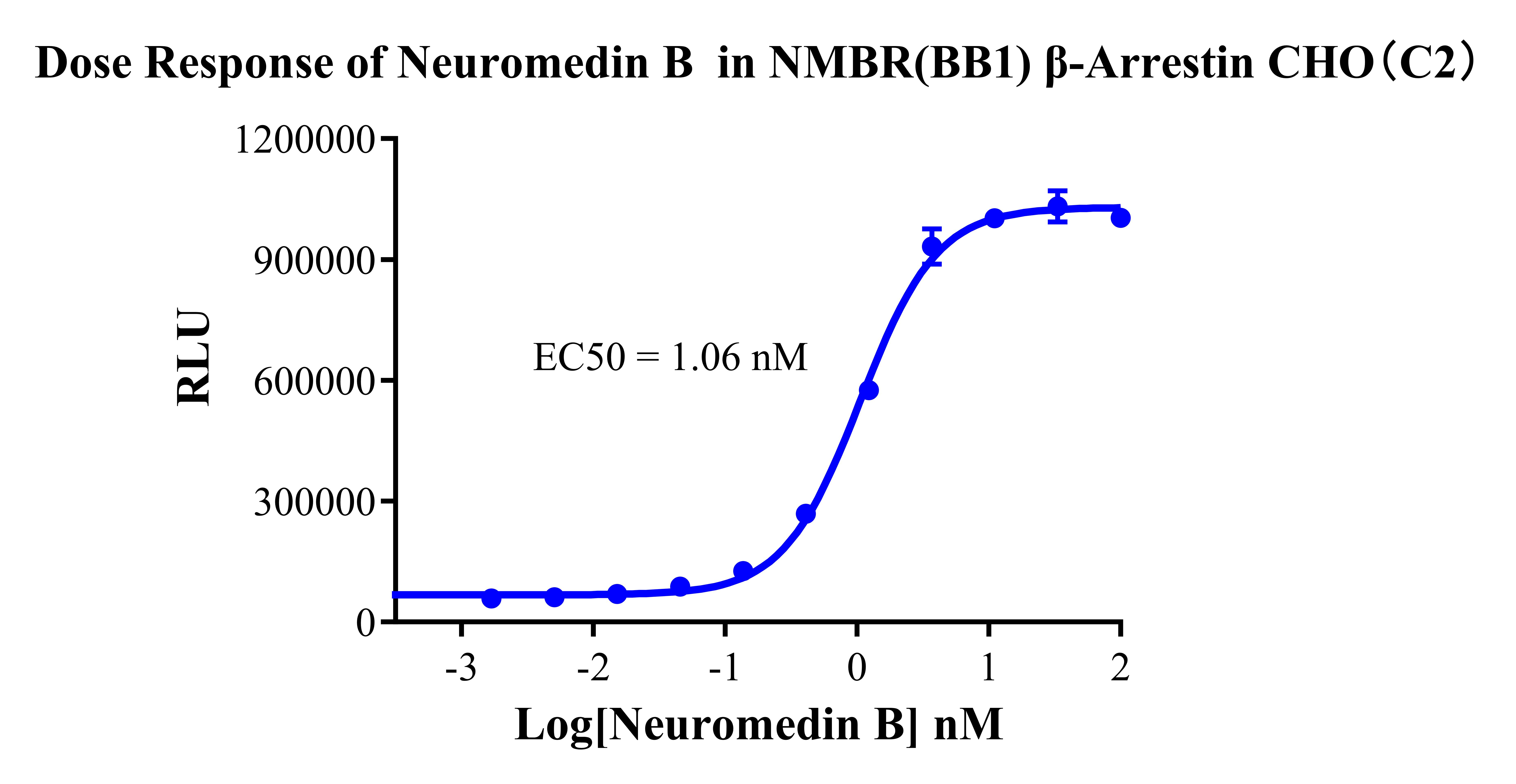 NMBR(BB1) β-Arrestin CHO 報告基因藥靶模型很好的模擬了體內 NMBR/β-Arrestin 的信號轉導過程,原理見下圖所示。當缺乏配體刺激時,β-Arrestin 不與 NMBR 結合,融合β- Arrestin 的熒光素酶處于失活構象,當 NMBR 遭遇配體刺激時,融合熒光素酶報告基因的 β-Arrestin 被招募,使熒光素酶報告基因處于激活狀態(tài),加入其底物后發(fā)光信號增強。![]() Figure 1. NMBR(BB1) β-Arrestin CHO 細胞模型原理圖 |