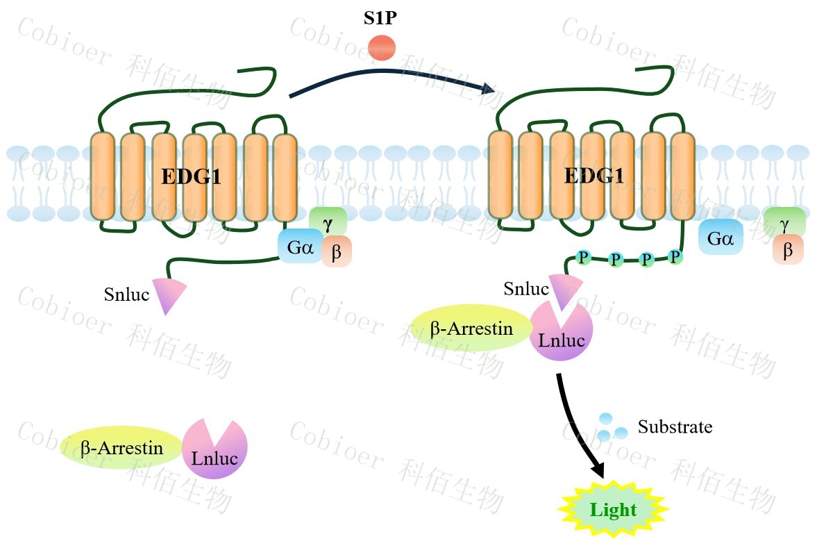 EDG1(S1P1) β-Arrestin CHO 報(bào)告基因藥靶模型很好的模擬了體內(nèi) EDG1(S1P1)/β- Arrestin 的信號(hào)轉(zhuǎn)導(dǎo)過(guò)程,原理見(jiàn)下圖所 示 。 當(dāng)缺乏配體刺激時(shí), β-Arrestin 不 與 EDG1(S1P1)結(jié)合,融合β-Arrestin 的熒光素酶處于失活構(gòu)象,當(dāng) EDG1(S1P1)遭遇配體刺激 時(shí),融合熒光素酶報(bào)告基因的β-Arrestin 被招募,使熒光素酶報(bào)告基因處于激活狀態(tài),加入 其底物后發(fā)光信號(hào)增強(qiáng)。![]() Figure 1. EDG1(S1P1) β-Arrestin CHO 細(xì)胞模型原理圖 |