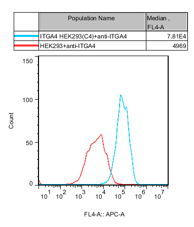 ![]() Figure 1. Recombinant ITGA4 HEK293 stably expressing ITGA4. |