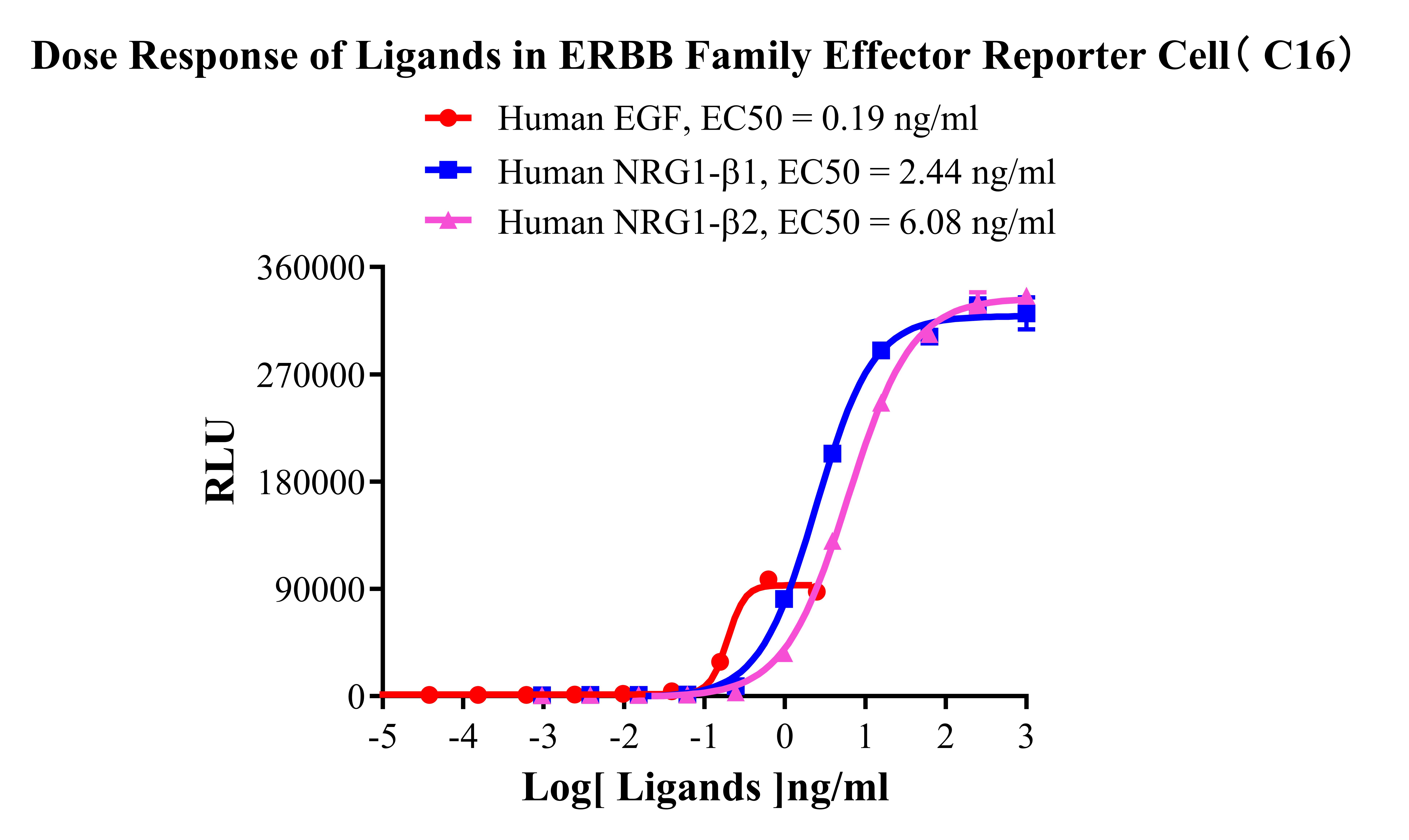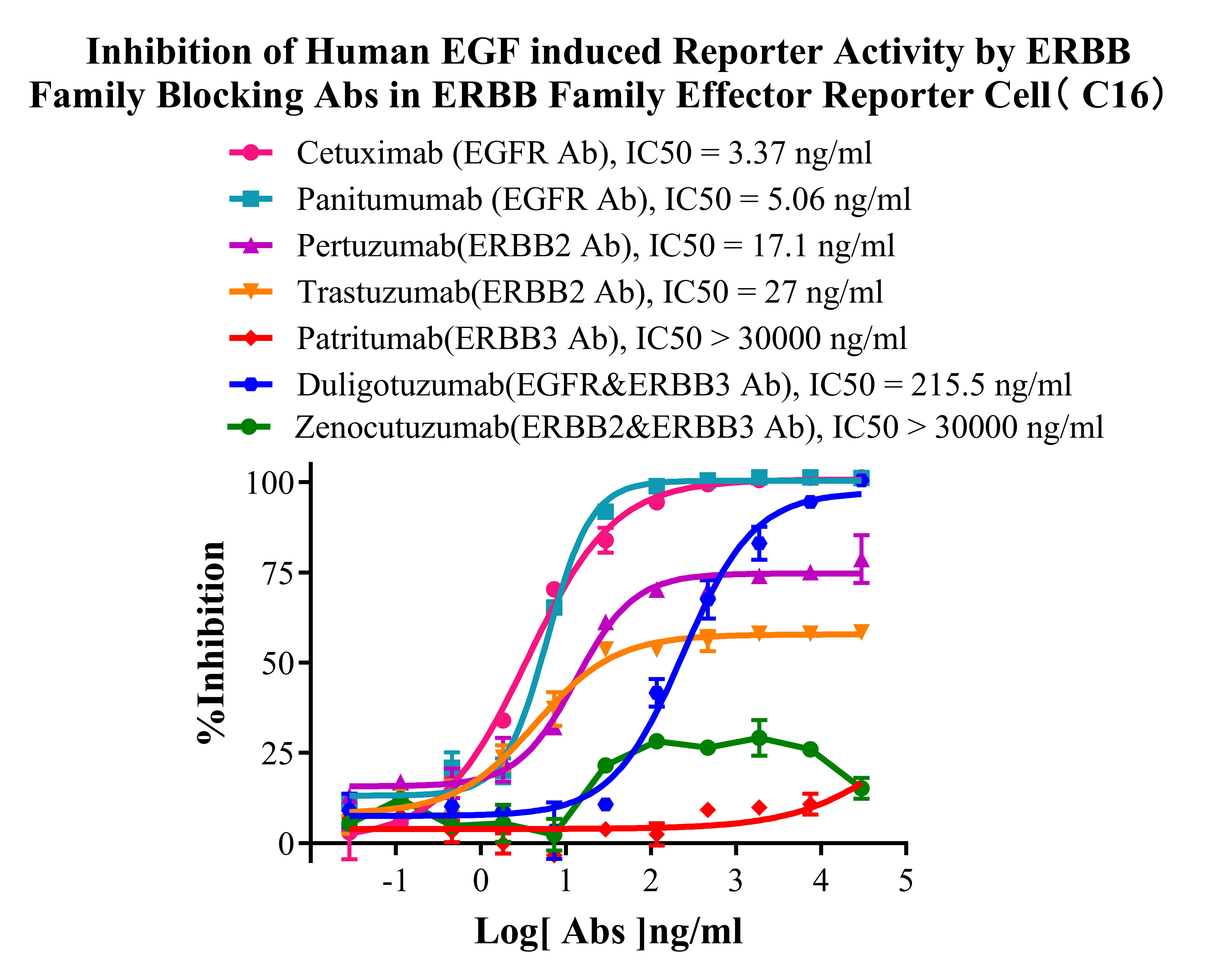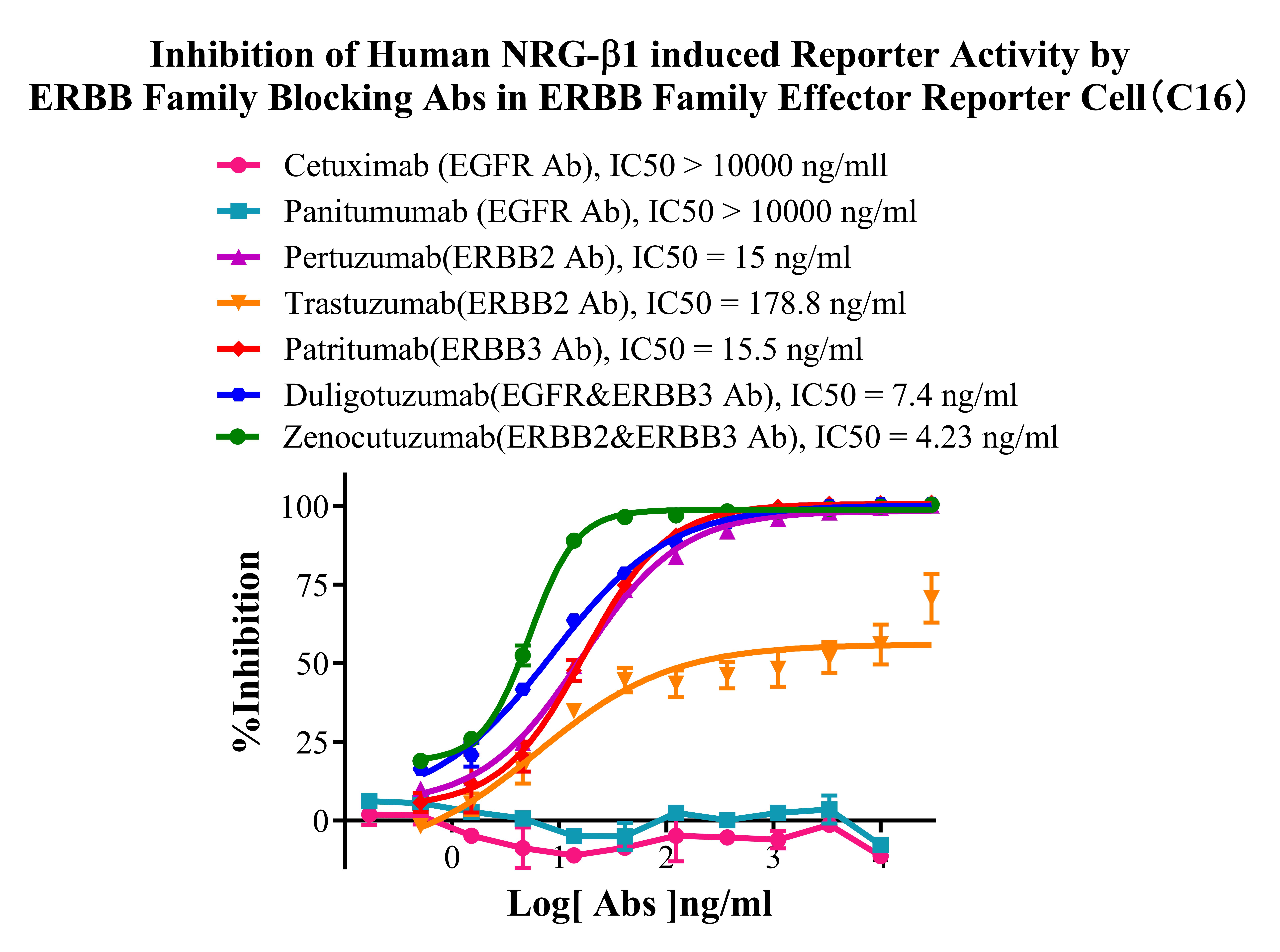 Figure 6. Inhibition of Human NRG-β1 induced Reporter Activity by ERBB Family Blocking Abs in ERBB Family Effector Reporter Cell(C16).
