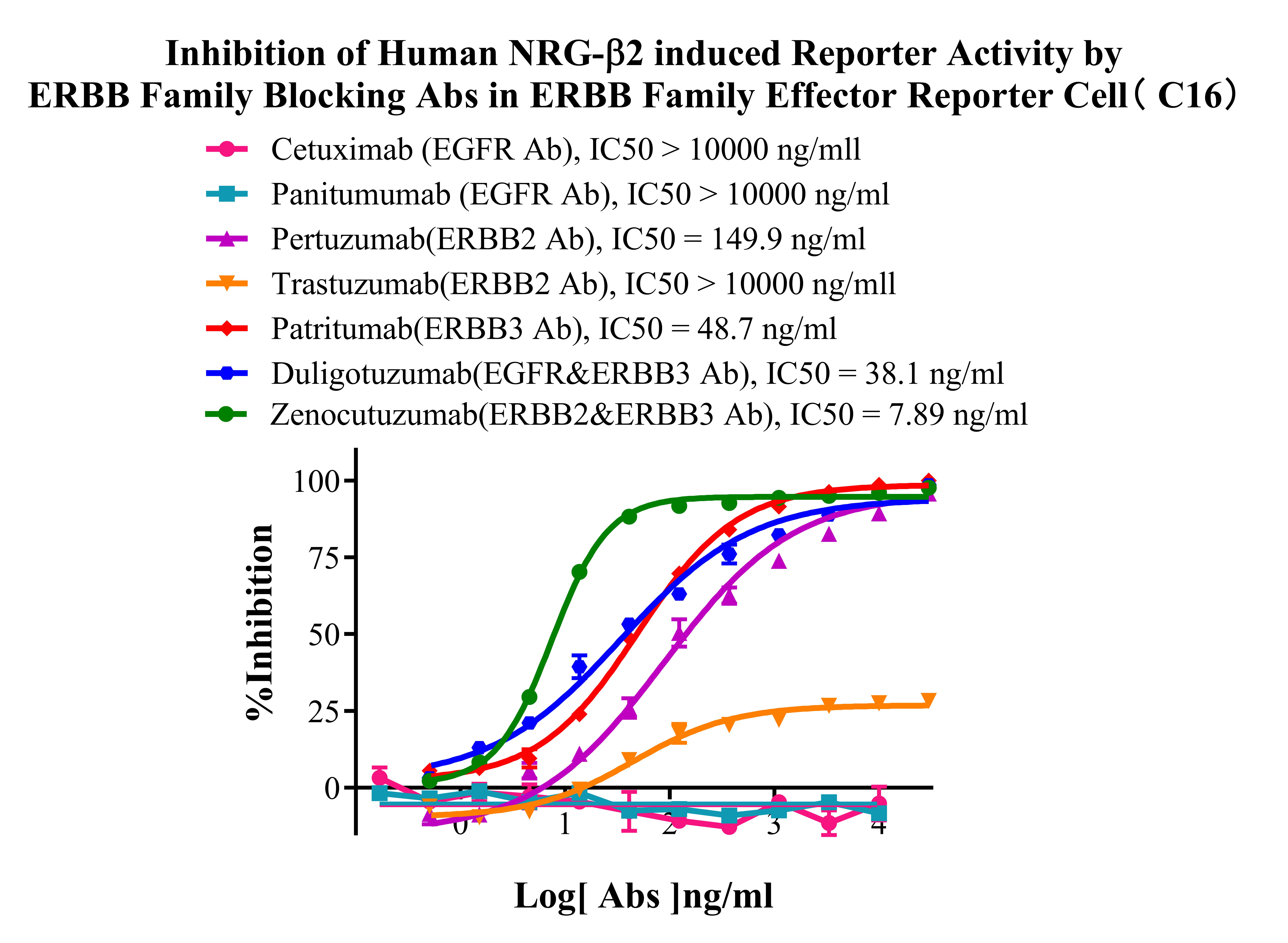 Figure 8. Inhibition of Human NRG-β2 induced Reporter Activity by ERBB Family Blocking Abs in ERBB Family Effector Reporter Cell(C16).