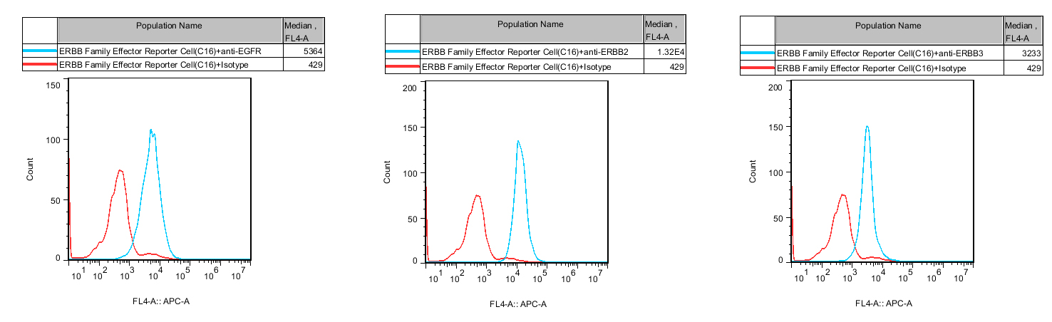 ![]() Figure 1. Recombinant ERBB Family Effector Reporter Cell stably expressing EGFR & ERBB2 & ERBB3. ![]() Figure 2. Dose Response of Ligands in ERBB Family Effector Reporter Cell (C16). ![]() Figure 3. Inhibition of Human NRG-β2 induced Reporter Activity by ERBB Family Small Molecular Inhibitor in ERBB Family Effector Reporter Cell (C16). ![]() Figure 4. Inhibition of Human EGF induced Reporter Activity by ERBB Family Blocking Abs in ERBB Family Effector Reporter Cell(C16). ![]() Figure 5. Inhibition of Human EGF induced Reporter Activity by ERBB Family Small Molecular Inhibitor in ERBB Family Effector Reporter Cell( C16). |