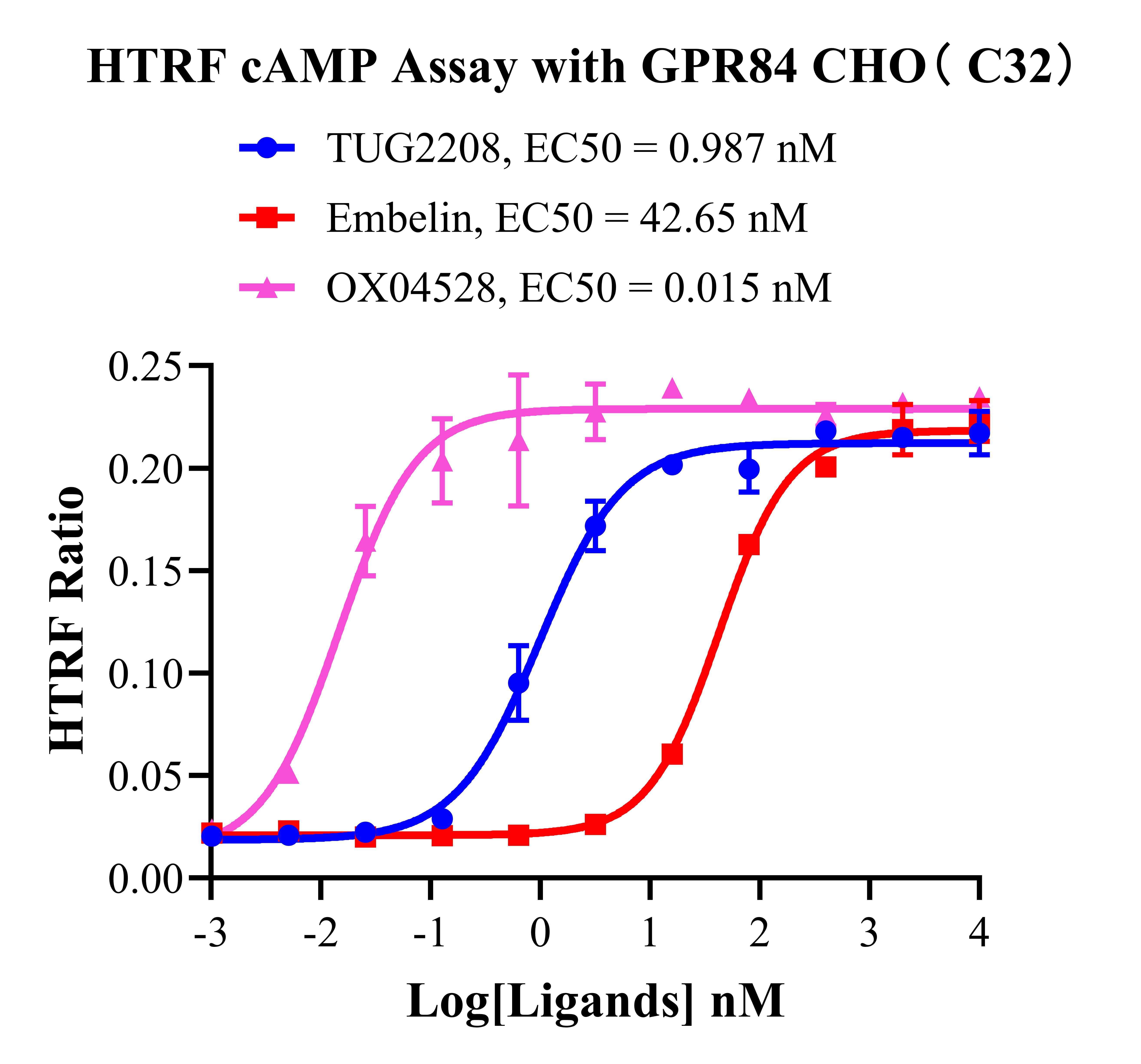V. Representative Data![]() Figure 1. HTRF cAMP Assay with GPR84 CHO( C32). |