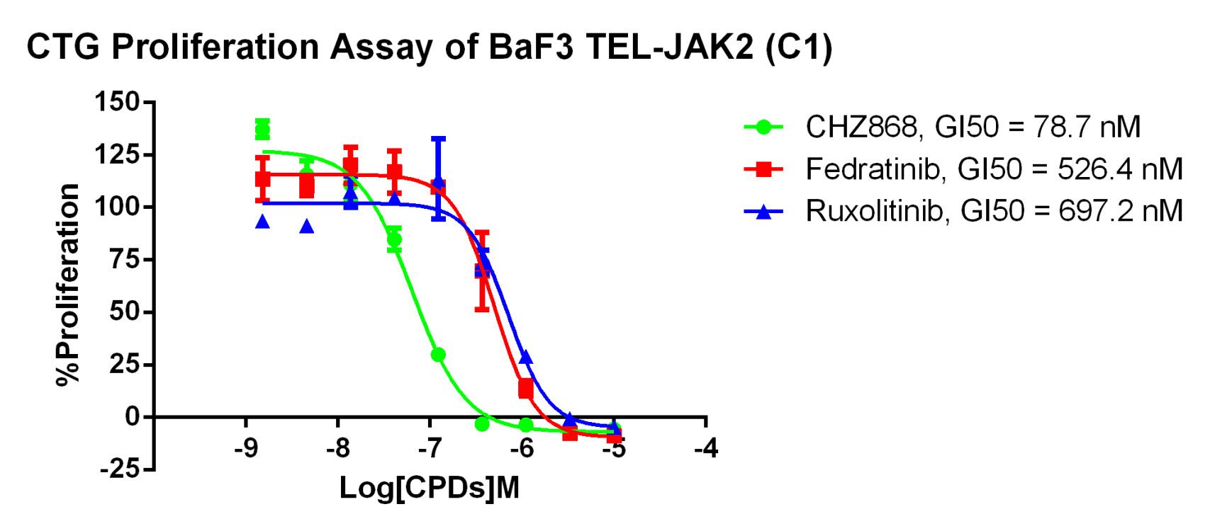 Figure 2. CTG Proliferation Assay of BaF3 TEL-JAK2 (C1). |