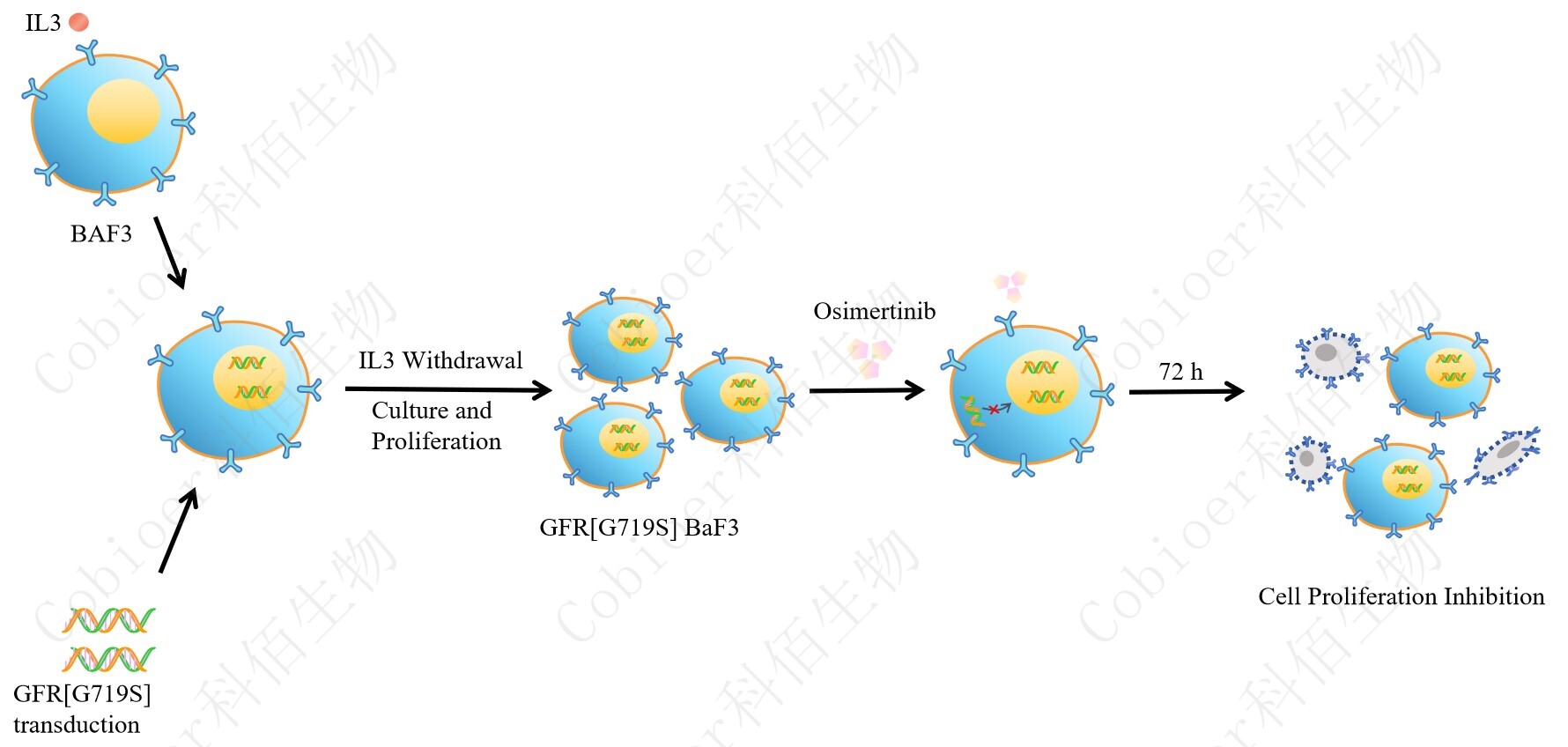 BaF3(小鼠原 B 細(xì)胞)的生長和增殖需要 IL-3 的維持。通過引入各種表達(dá)激酶的基因, 能作為 BaF3 的驅(qū)動基因,讓 BaF3 不再依賴 IL-3 而增殖,進(jìn)而激酶基因成為 BaF3 增殖依 賴的驅(qū)動基因,用于評估小分子藥物對激酶的靶向抑制作用,原理及流程見下圖所示。