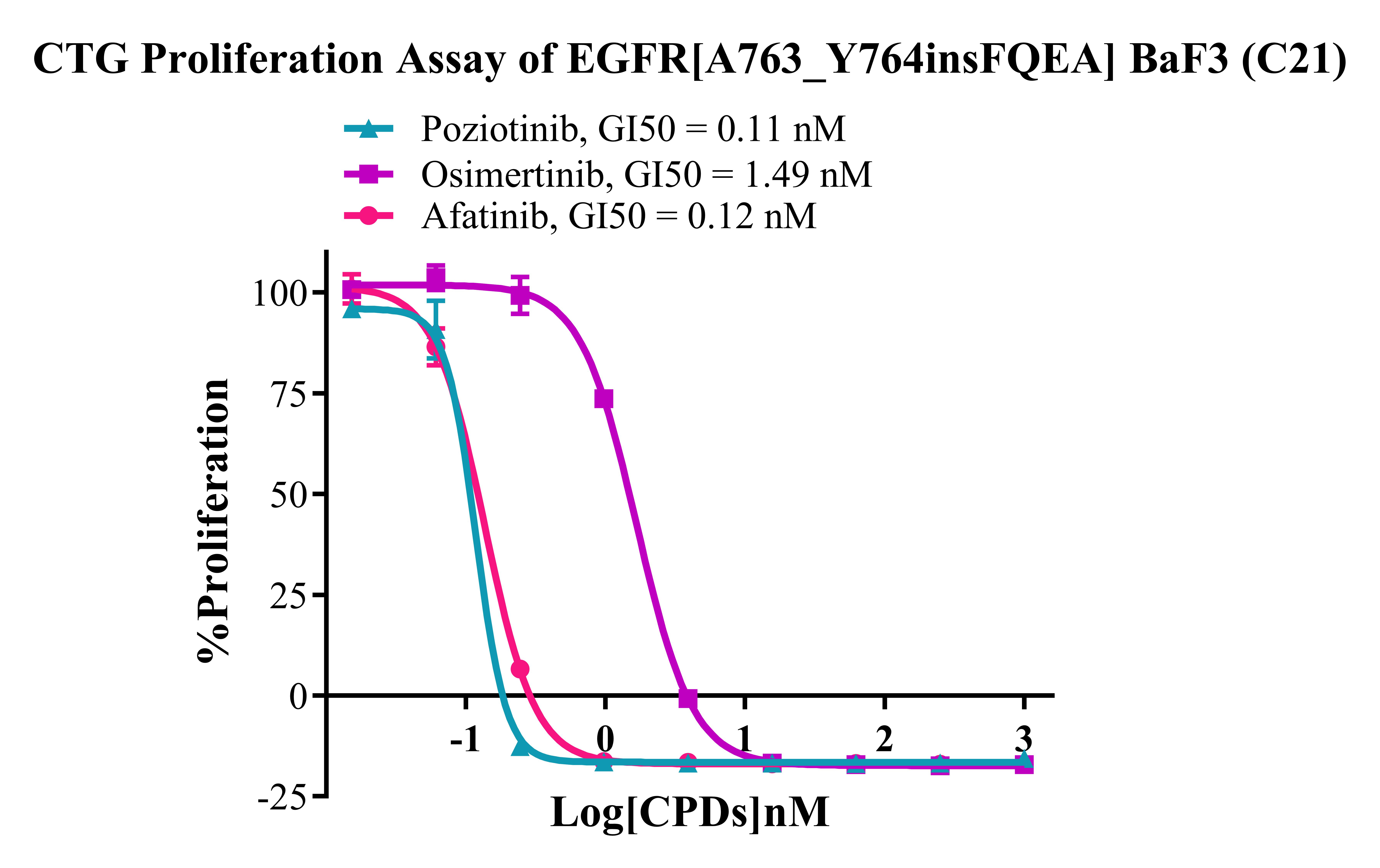 Figure 3. CTG Proliferation Assay of EGFR [A763_ Y764insFQEA] BaF3 (C21). |
