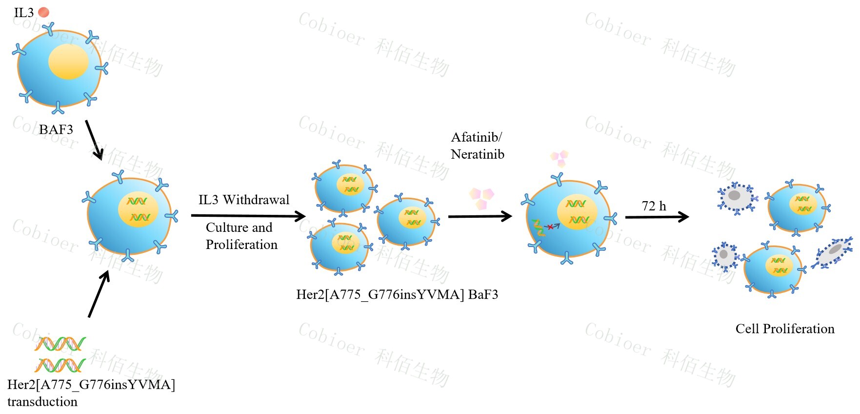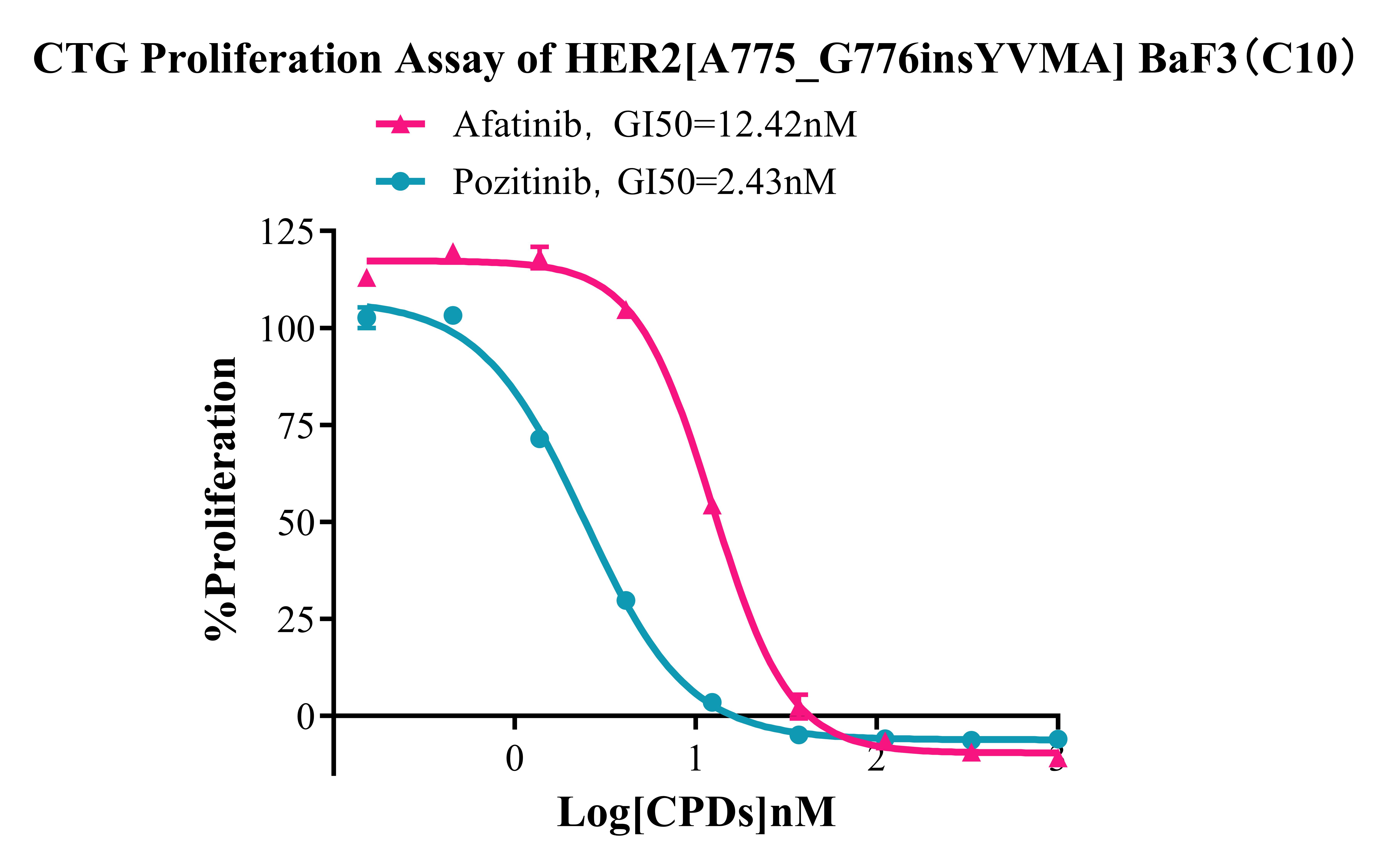HER2[A775_G776insYVMA] BaF3 藥靶細胞,通過轉(zhuǎn)導突變狀態(tài)的 HER2[A775_G776insYVMA] 基 因 到 BaF3 細 胞 系 中 , 穩(wěn) 定 表 達人突變形態(tài)下的 HER2[A775_G776insYVMA] 基因。