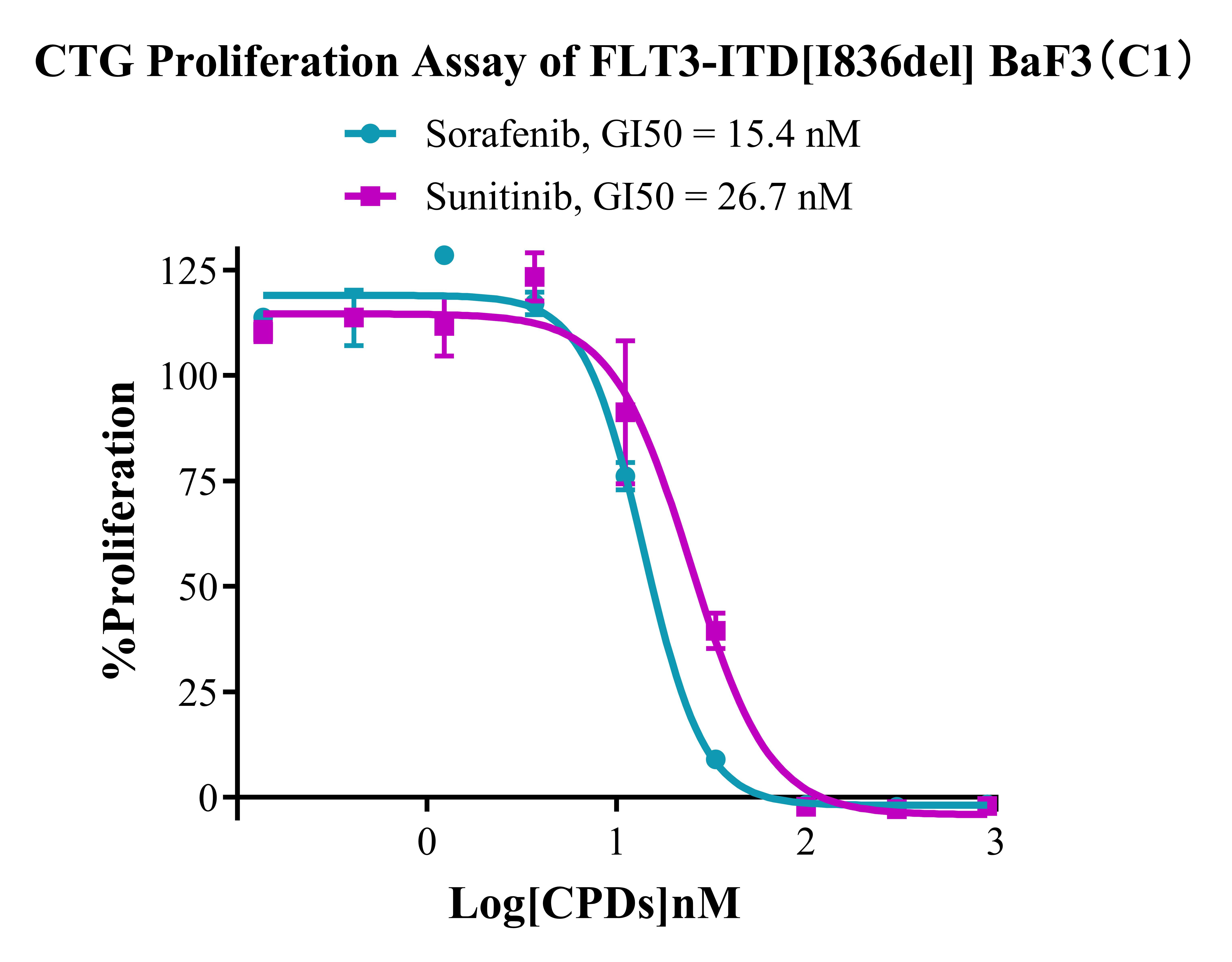Figure 4. CTG Proliferation Assay of FLT3-ITD [I836del] BaF3(C1). |