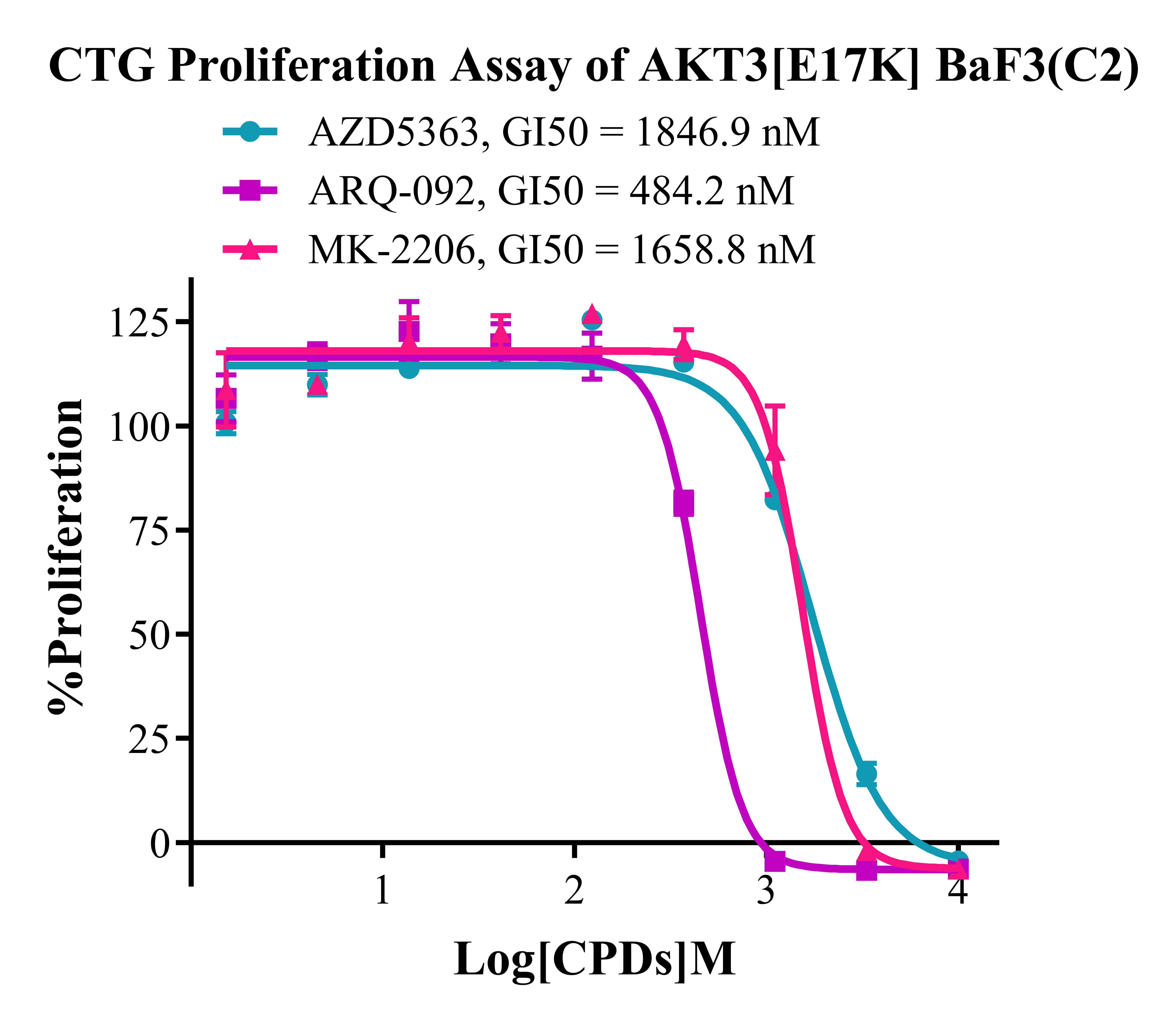 BaF3(小鼠原 B 細胞)的生長和增殖需要 IL-3 的維持。通過引入各種表達激酶的基因, 能作為 BaF3 的驅(qū)動基因,讓 BaF3 不再依賴 IL-3 而增殖,進而激酶基因成為 BaF3 增殖依賴的驅(qū)動基因,用于評估小分子藥物對激酶的靶向抑制作用,原理及流程見下圖所示。