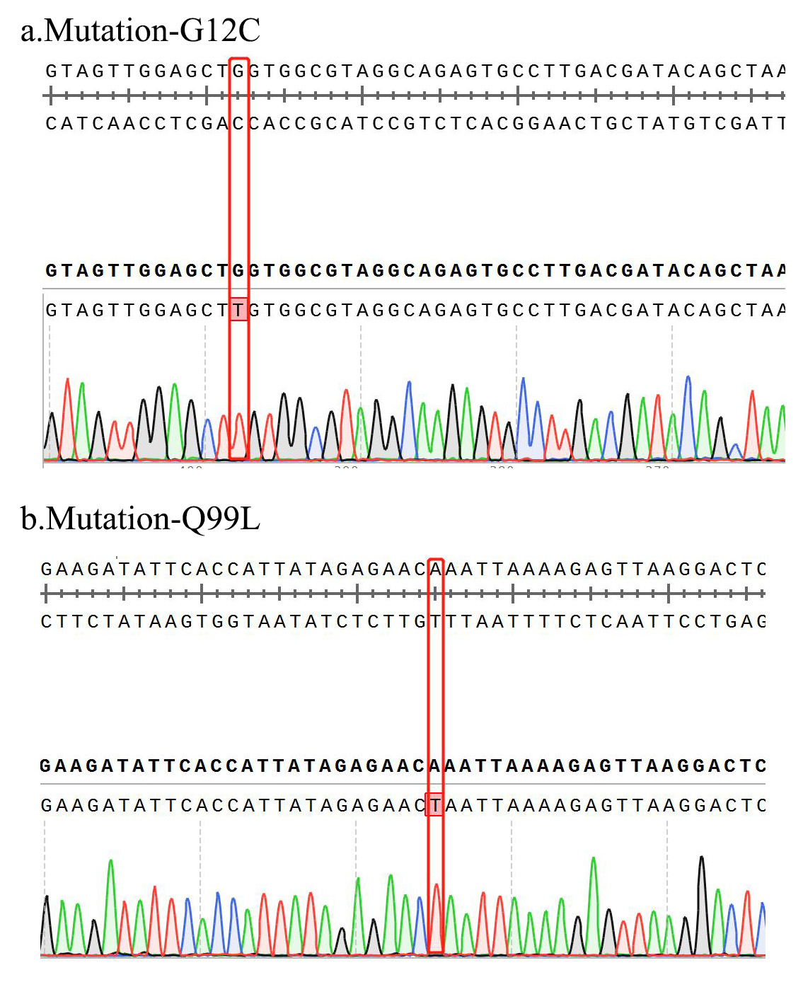1.Sanger of KRAS[G12C&Q99L] BaF3 Figure 2. Sanger of KRAS[G12C&Q99L] BaF3 |