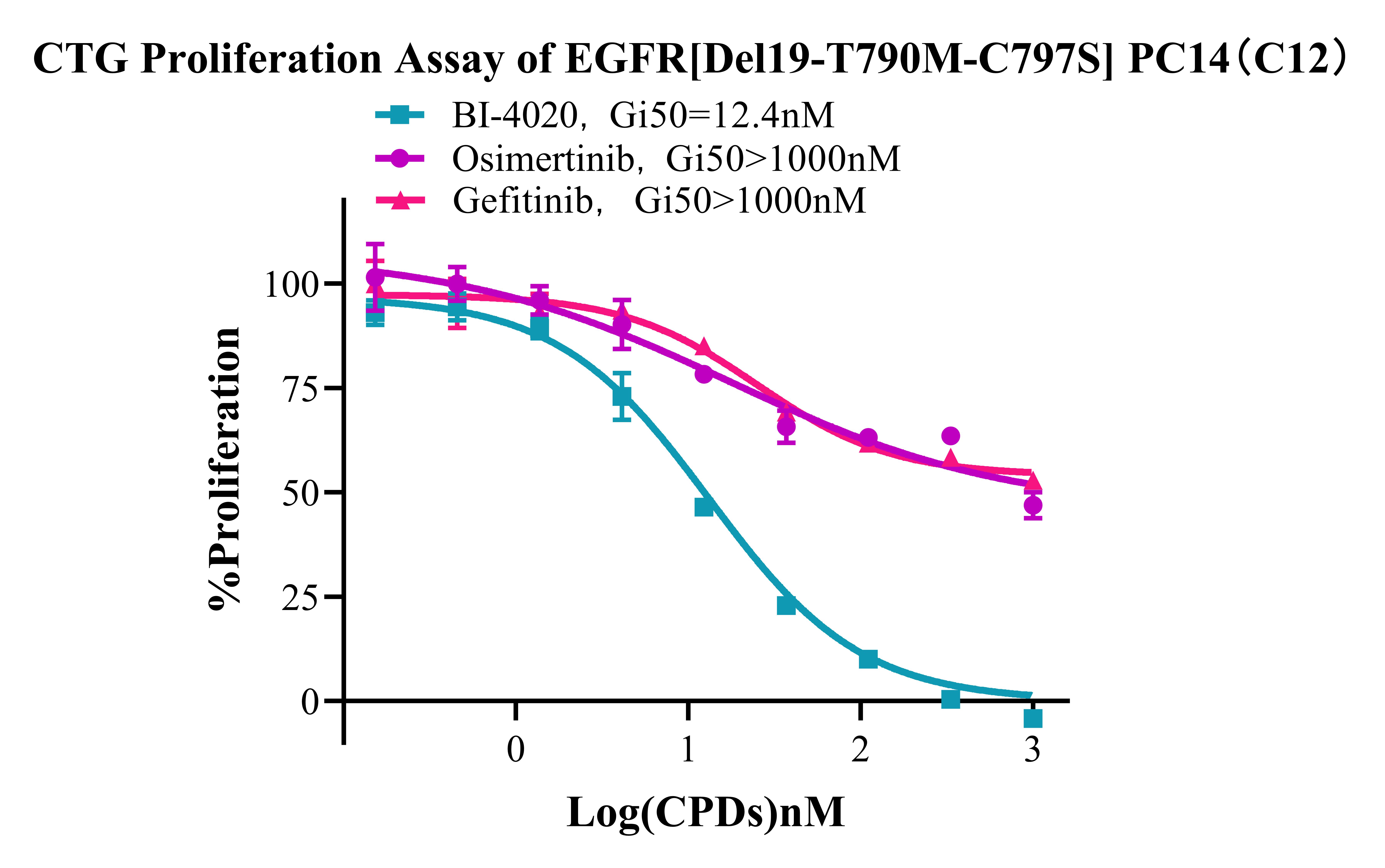 Figure 2. CTG Proliferation Assay Of EGFR Del19/T790M/C797S-PC14 Cells (C12). |