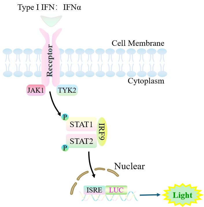 ![]() Figure 1. ISRE-Luc HEK293 細胞模型原理圖