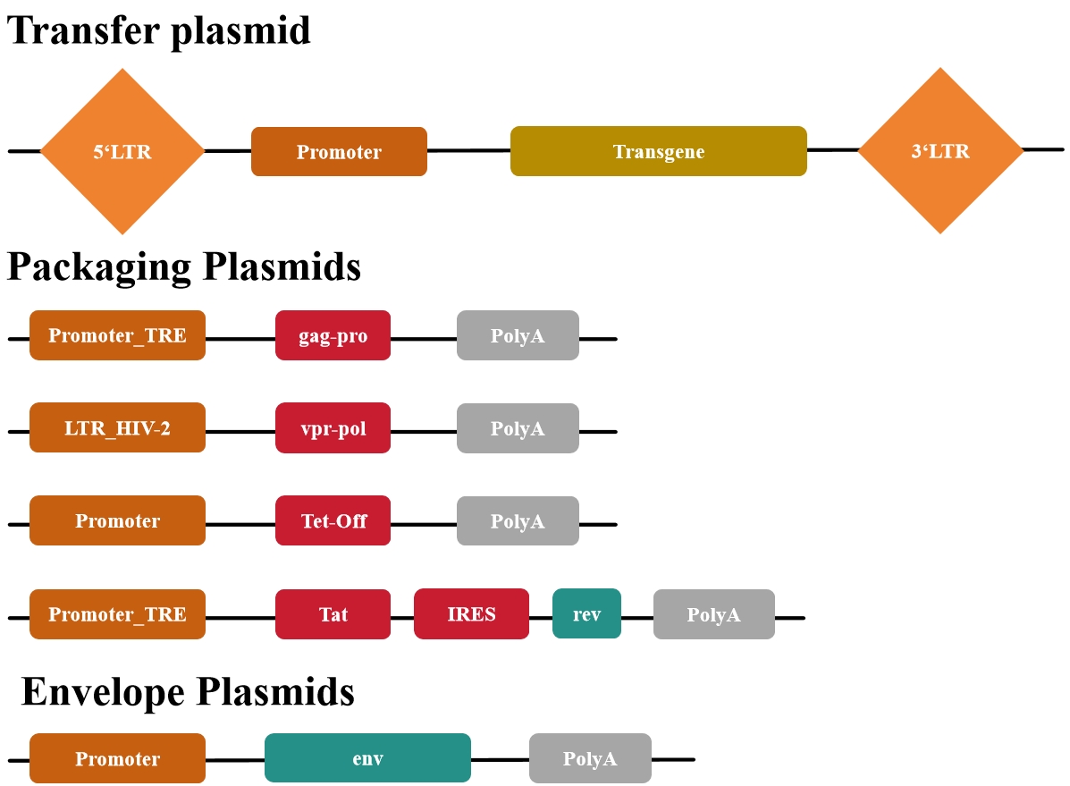 第一代慢病毒質(zhì)粒缺乏安全性改進以及無法生產(chǎn)具有復(fù)制能力的慢病毒(即產(chǎn)生能夠感染細胞并進一步自我復(fù)制的病毒顆粒),基本已經(jīng)廢棄使用了。