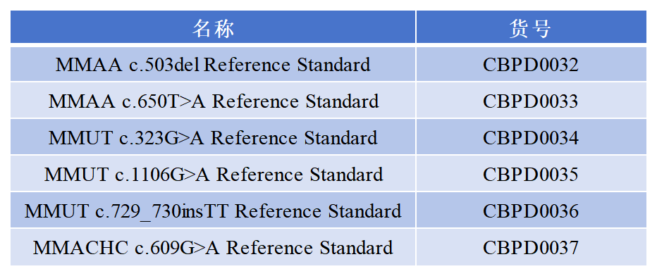 在MMA檢測(cè)實(shí)驗(yàn)中,如何判斷結(jié)果的準(zhǔn)確性,標(biāo)準(zhǔn)品是必不可少的,科佰現(xiàn)推出MMA相關(guān)標(biāo)準(zhǔn)品,主要包含了MMAA、MMUT、MMACHC基因位點(diǎn),后期還將陸續(xù)推出其他基因位點(diǎn)。