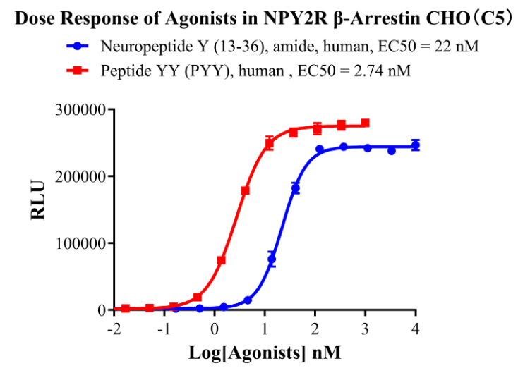 為了助力NPY2R藥物的研發(fā),科佰生物及時開發(fā)了基于cAMP信號通路和β-Arrestin信號通路的兩款NPY2R細胞模型,用于候選藥物早期機理研究。