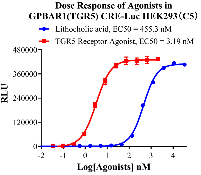 為了助力TGR5藥物的研發(fā),科佰生物及時(shí)開(kāi)發(fā)了基于CREB/cAMP信號(hào)通路的TGR5細(xì)胞模型,用于候選藥物早期機(jī)理研究。