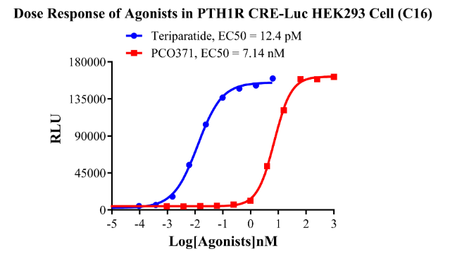 CHO、PTH1R CRE-Luc HEK293和PTH1R β-Arrestin CHO細(xì)胞篩選模型,產(chǎn)品驗證結(jié)果如下: