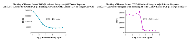 為助力GARP/LTGF-β 靶點藥物研發(fā),南京科佰開發(fā)了GARP/Latent TGF-β1 Target Cell、GARP/Latent TGF-β1 CHO細(xì)胞篩選模型,產(chǎn)品驗證結(jié)果如下: