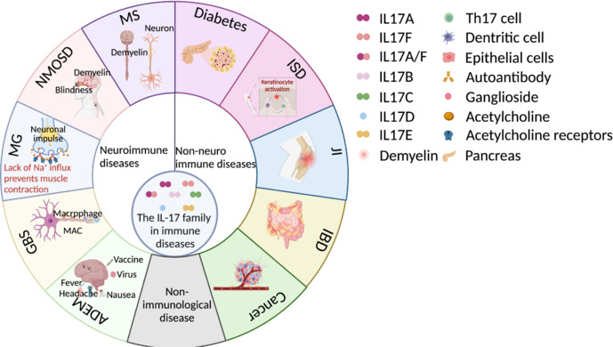 IL-17 細(xì)胞因子參與多種免疫調(diào)節(jié),對自身免疫性疾病及免疫相關(guān)疾?。ㄈ缍喟l(fā)性硬化癥、視神經(jīng)脊髓炎譜系疾病、重癥肌無力、吉蘭-巴雷綜合征和急性播散性腦脊髓炎)以及非神經(jīng)免疫性疾病中的炎癥和病理過程產(chǎn)生影響。