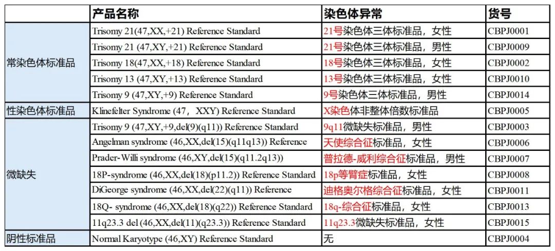 在檢測的過程中,質(zhì)控品和參考品是必不可少的。針對NIPT檢測,科佰推出染色體非整倍數(shù)參考品和質(zhì)控品,包含常染色體和性染色體,以及微缺失和微重復質(zhì)控品和參考品,后期還將陸續(xù)推出嵌合體的參考品。