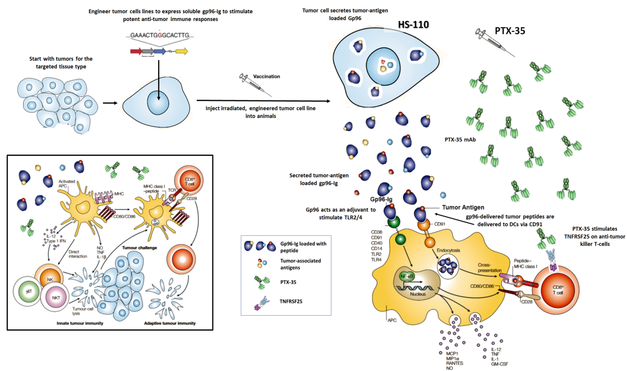 也有文章揭露,在體內(nèi)通過可溶性TL1A觸發(fā)DR3可促進(jìn)抗原特異性CD8(+) T細(xì)胞的增殖和積累,以及它們向CTL的分化。此外,DR3也作為記憶性CD8(+) T細(xì)胞的共刺激受體,其被觸發(fā)時(shí)會(huì)增強(qiáng)內(nèi)源性抗原特異性記憶CD8(+) T細(xì)胞的二次擴(kuò)增。因此,DR3(TNFRSF25)激動(dòng)劑,可能潛在地用于增強(qiáng)旨在誘導(dǎo)人類抗腫瘤CD8(+) T細(xì)胞的免疫原性從而達(dá)到抗腫瘤的作用。目前處于臨床I期的抗體藥物PTX-35,就是一種用于T細(xì)胞擴(kuò)增的新型TNFRSF25激動(dòng)劑。PTX-35協(xié)同腫瘤抗原負(fù)載gp96共刺激CD8+ T細(xì)胞激活DC,增強(qiáng)先天性免疫和繼發(fā)性免疫,從而產(chǎn)生有效的腫瘤殺傷效應(yīng)細(xì)胞和長期記憶。